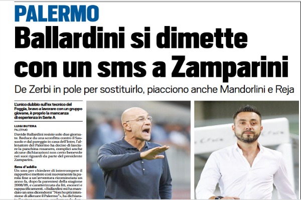 Tuttosport: “Palermo, Ballardini si dimette con un sms a Zamparini”