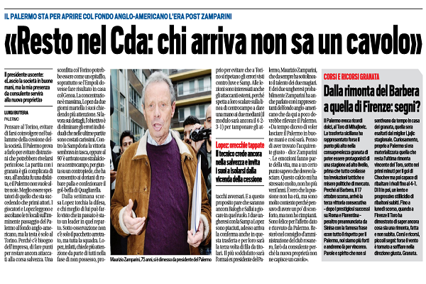 Tuttosport: “Palermo, inizia l’era post-Zamparini: «Resto nel Cda: chi arriva non sa un cavolo»”