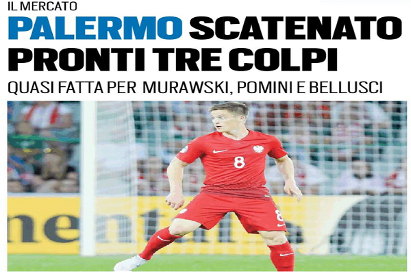 “Il Palermo è vicino a tre colpi: preso il mediano polacco Radoslaw Murawsk (’94), capitano all’Europeo Under 21 , in arrivo dal Piast Glinice. Con lui, in arrivo lo storico portiere del Sassuolo, Alberto Pomini (’81) e il difensore ex Empoli Giuseppe Bellusci svincolatosi dal Leeds. […]”. Questo quanto si legge sull’edizione odierna di “Tuttosport”.