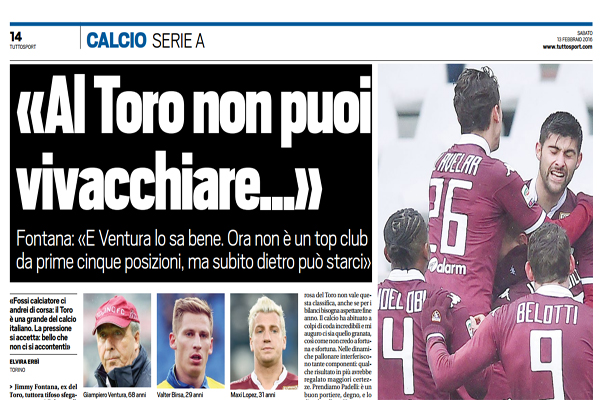 Il mercato di gennaio quanto incide? «Alla fine, è arrivato Immobile come titolare. Credo abbia portato una ventata di freschezza di cui si sentiva la necessità, ma certo non può risolvere sempre lui le gare o cambiare gli equilibri da solo. «Fossi calciatore ci andrei di corsa: il Toro è una grande del calcio italiano. La pressione si accetta: bello che non ci si accontenti» E a questo Toro manca qualche risultato».