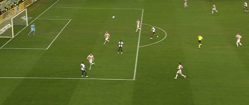 Primo tempo illuminato dalle due perle di Brunori e caratterizzato dal forcing sterile dei gialloblù, arrivati al tiro con Hernani (colpevole sul primo gol), Bonny (esterno della rete), Di Chiara (alto) e Estevez (fuori di poco). Ripresa al cardiopalma: prima la rasoiata di Estevez che ha riaperto la partita (1-2), poi le occasioni di Bonny (fuori di poco), Henderson (rasoterra fuori), Lucioni (alto) e Bernabé (alto), e infine il 3-1 di Segre che ha sfruttato un errore difensivo di Balogh e Di Chiara. Nel recupero, quando Corini assaporava i 3 punti, è successo di tutto, grazie ai cambi azzeccati di Pecchia: prima il diagonale fulminante di Mihaila e poi il colpo di testa nell’angolino di Charpentier (assist al bacio di Bernabé) che ha chiuso la contesa e fatto esplodere la gioia del Tardini. E’ un punto d’oro che vale il primo posto in solitaria.
