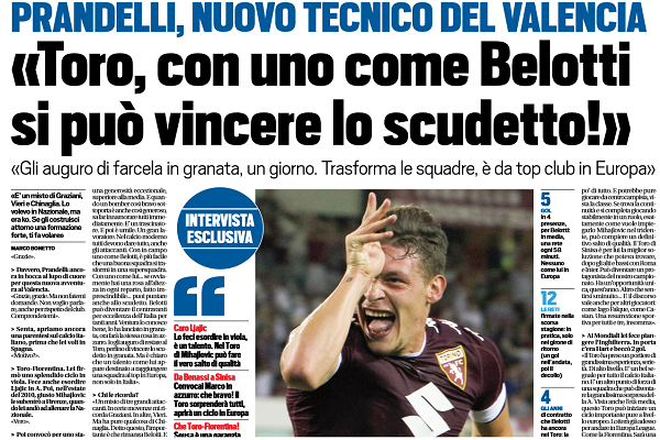 Tuttosport: “Prandelli: «Toro, con uno come Belotti si può vincere lo scudetto!»”