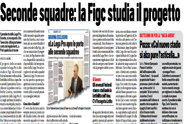 “Il progetto delle seconde squadre in Lega Pro è allo studio in Figc. Gli avvocati federali stanno verificando la fattibilità dell’idea, dopo che martedì il presidente Tavecchio ne ha parlato con Gabriele Gravina, neoeletto presidente della Lega Pro. E se negli ambienti federali si respira una tiepida prudenza a controbilanciare l’entusiasmo progettuale di Gravina, nessuno esclude che alla fine l’idea non venga realizzata. Ieri Tavecchio era a Udine, padrino nel battesimo del nuovo stadio Friuli, e a margine della conferenza stampa ha solo ricordato che la questione «deve tenere conto dei regolamenti», che al momento non consentono il meccanismo di inserimento delle seconde squadre pensato da Gravina, ma è sembrato più un voler ribadire il ruolo centrale della Figc, più che un ostacolare il progetto. Anzi, in Figc hanno colto con disponibile curiosità la disponibilità del neopresidente della Lega Pro ad accogliere le seconde squadre (finora la Lega Pro non aveva mai aperto a questa prospettiva) e si sono messi al lavoro per discutere concretamente della cosa nel prossimo consiglio federale. Cosa dice Claudio? E’ ovvio che decisiva sarà la sempre pesante posizione di Claudio Lotito, che sulle seconde squadre si è sempre espresso in modo negativo ed è propugnatore delle “seconde proprietà”, in teoria e in pratica (vedi Salernitana). Si sa quanto il presidente della Lazio sia influente sulle politiche federali e c’è da credere che diventi il principale ostacolo che Gravina dovrà affrontare sulla strada verso l’ammissione delle seconde squadre nel campionato di Lega Pro. Tuttavia intanto non è cosa da poco incassare la disponibilità di Tavecchio (dopo il colloquio di martedì) e sapere che in via Allegri si sta lavorando. Il progetto Il progetto di Gravina, annunciato in un’intervista esclusiva a Tuttosport, prevede l’inserimento di un numero massimo di sei “seconde squadre” di club di Serie A attraverso un bando. E i singoli hanno svoltato lezioni solo società di comprovata limpidezza finanziaria e a posto con licenze Uefa e nazionali. Una riforma voluta nel quadro di un più profondo rinnovamento del format della Lega Pro e che sicuramente ingolosisce i club che da sempre sono favorevoli al progetto delle seconde squadre, Juventus in testa, che da sempre sogna di poter gestire i giovani più promettenti (fatti in casa o acquistati) a Vinovo, potendo eventualmente attingere al serbatoio e senza sparpagliarli in giro per l’Italia o l’Europa, dove la crescita è spesso minata da latri interessi. Le seconde squadre, tuttavia, non sembrano essere la priorità nell’agenda di Tavecchio, alle prese con l’infuocata polemica tra i club e la Nazionale, dopo lo sgarbo della Lega che non ha anticipato la finale di Coppa Italia e depotenziato fino a farlo saltare lo stage azzurro di febbraio. Tavecchio ha tuonato: «Prendo atto, e prendere atto è un concetto molto freddo, delle decisioni della Lega. Non credo che sia possibile che le esigenze nazionali debbano passare in secondo piano di fronte a quelle dei club e sono convinto che sarà necessario regolamentare queste cose in futuro, soprattutto negli anni di Mondiali ed Europei. E sulla finale di Coppa Italia, quando si conosceranno le finaliste, cercherò un compromesso». Come dire che se si riesce, si potrebbe anticipare di qualche giorno come voleva Conte”. Questo quanto scrive l’edizione odierna dI “Tuttosport”.