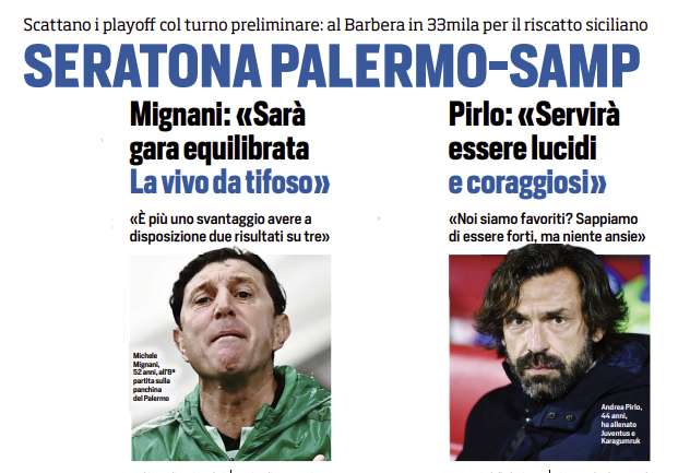 L’edizione odierna di Tuttosport si sofferma sulla gara tra Palermo e Sampdoria in programma questa sera.