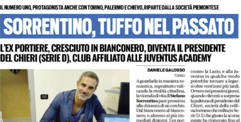 Tuttosport: “Sorrentino, tuffo nel passato. L’ex portiere diventa presidente del Chieri”