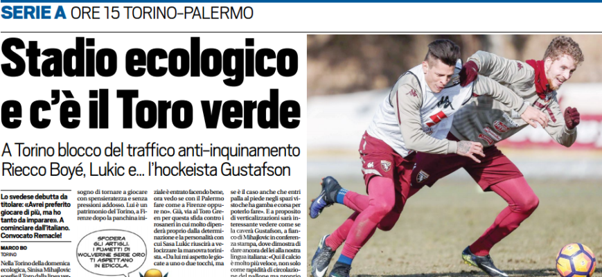 “Nella Torino della domenica ecologica, Sinisa Mihajlovic sceglie il Toro dalla linea verde. Spazio ai giovani e non per regalare uno zuccherino a chi suda dalla scorsa estate senza quasi mai vedere il campo. Il motivo, ovviamente, è un altro. Rendersi conto sino in fondo del loro reale valore, per decidere se investirci nella prossima annata e poterli considerare vere e proprie risorse. Il pensiero lo esprime senza troppi giri di parole lo stesso Sinisa Mihajlovic, che alla vigilia della sfida col Palermo annuncia ufficialmente Gustafson dal primo minuto come mezzala destra, fa intuire che toccherà ancora a Lukic guidare in regia il Torino e, sibillinamente, parla in maniera indiretta di Boyé visto che su Ljajic dice «ha bisogno di tornare a giocare con spensieratezza e senza pressioni addosso. Lui è un patrimonio del Torino, a Firenze dopo la panchina iniziale è entrato facendo bene, ora vedo se con il Palermo fare come a Firenze oppure no». Già, via al Toro Green per questa sfida contro i rosaneri in cui molto dipenderà proprio dalla determinazione e la personalità con cui Sasa Lukic riuscirà a velocizzare la manovra torinista. «Da lui mi aspetto le giocate a uno o due tocchi, ma se è il caso anche che entri palla al piede negli spazi visto che ha gamba e corsa per poterlo fare». E a proposito di verticalizzazioni sarà interessante vedere come se la caverà Gustafson, a fianco di Mihajlovic in conferenza stampa, dove dimostra di dare ancora del lei alla nostra lingua italiana: «Qui il calcio è molto più veloce, non solo come rapidità di circolazione del pallone ma proprio per la scelta delle giocate. Si fa tutto più in fretta. Normale che avrei voluto giocare di più ma è la mia prima stagione, avevo e ho tanto da imparare. Se ho praticato in Svezia anche qualche altro sport? Sì, l’hockey ghiaccio». Confessione che scatena la battuta del tecnico, particolarmente ispirato dal punto di vista dialettico. «Beh, sai che sorpresa, in Svezia lo praticano tutti, avessi detto pallacanestro…». Oggi in ogni caso la mezzala scandinava non dovrà convincere soltanto grazie alla sua dote naturale di far girare il pallone con verticalizzazioni fulminee, ma pure dal punto di vista dei contrasti. «Deve essere un po’ più robusto e anche per questa ragione in questi mesi abbiamo lavorato su di lui per farlo diventare più fisicato». A rendere poi la domenica ancora più verde ecco la prima convocazione per il belga Martin Remacle, centrocampista diciannovenne preso a gennaio per la Primavera ma già pronto per un’eventuale convocazione in prima squadra. E infatti l’infortunio di Obi associato alla squalifica di Benassi gli hanno regalato questo primo gettone”. Questo ciò che si legge sull’edizione odierna di “Tuttosport”.
