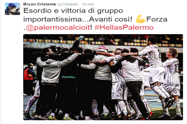 Twitter Cristante: “Esordio e vittoria importantissima. Avanti così, Forza Palermo”