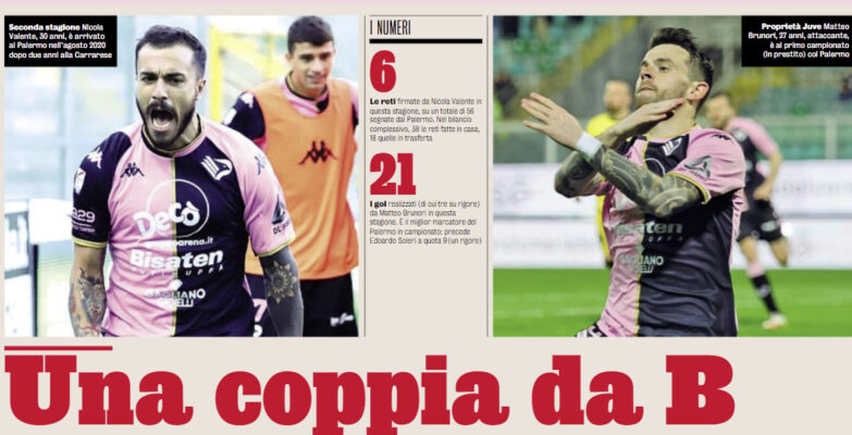 L’edizione odierna de “La Gazzetta dello Sport” si sofferma sulla coppia vincente del Palermo, quella formata da Brunori e Valente.