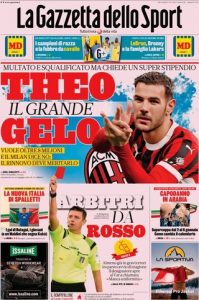 L'edizione odierna de La Gazzetta dello Sport dedica un titolo in prima pagina al Milan.