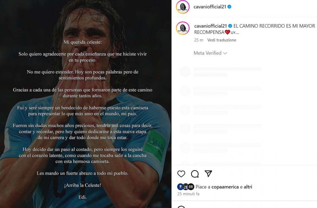 In Uruguay è appena terminata l’era Edison Cavani. L’ex goleador del Palermo ha infatti annunciato, attraverso i propri profili social, l’addio alla Nazionale sudamericana. Di seguito le parole del giocatore pubblicate su Instagram: