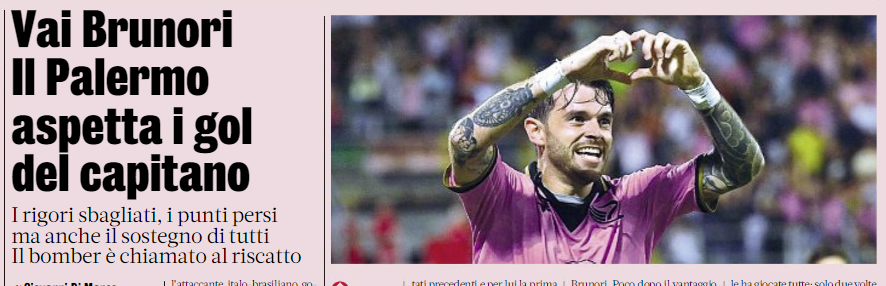 L’edizione odierna de “La Gazzetta dello Sport” si sofferma sul Palermo che aspetta i gol di Brunori.