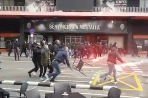 Violentissimi scontri tra tifosi prima di Valencia-Barcellona avvenuti nei pressi dello stadio Mestalla che hanno coinvolto i gruppi ultras Yomus e Boixos Nois. Un tifoso del Barcellona sarebbe stato arrestato, una sessantina invece i supporters indicati. Ci sono stati lanci di oggetti, bengala e anche bastonate tra gli Yomus del Valencia e i Boixos Nois del Barcellona. Qui il video: