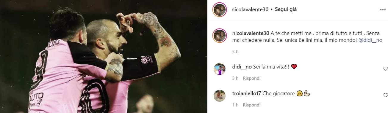 A commentare il post arriva anche l’ex rosanero Gennaro Troianiello scrivendo: “Che giocatore!”. In alto una foto.