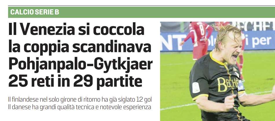COPPIA SHOW. Questa coppia di attaccanti è davvero uno spettacolo e un lusso per la cadetteria. Per caratteristiche i due sono totalmente diversi ma comunque assolutamente due prime punte e, come detto, quando è utile, possono integrarsi alla perfezione. Il finlandese, che è stato trafitto al cuore dall’amore sviscerato per la città di Venezia, la squadra oltre ai tifosi arancioneroverdi, è un attaccante che negli anni, nonostante alcuni seri infortuni, ha continuano, stagione dopo stagione, a migliorare le proprie prestazioni.