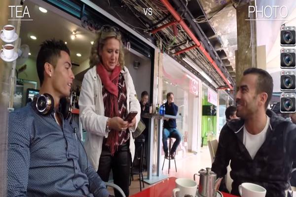 E’ ormai virale il video dell’attaccante del Real Madrid, Cristano Ronaldo che ha condotto una sorta di esperimento sociale prendendo un caffè in un bar in pieno centro di Madrid. La reazione dei clienti del bar e dei passanti non è stata chiaramente indifferente. Circa una cinquantina gli scatti che il centravanti ha fatto con i fan in pochi minuti. Di seguito la clip: