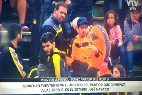 E’ successo in Uruguay, poco prima del fischio di inizio tra Club Atletico Progreso e Penarol. Il portiere della squadra ospite, scende in campo con il colore di maglia molto simile alla terna arbitrale e il direttore di gara glielo fa notare. Lo staff del Penarol, però trova una soluzione…sugli spalti. Un tifoso, ne indossa una perfetta, arancione acceso, ma soprattutto con il numero sulla schiena. Il ragazzo sembra incredulo, non capisce se sia finzione o realtà. Ma è tutto vero, così gli prestano un giubbotto anti-pioggia che indossa per coprirsi. Di seguito la clip: