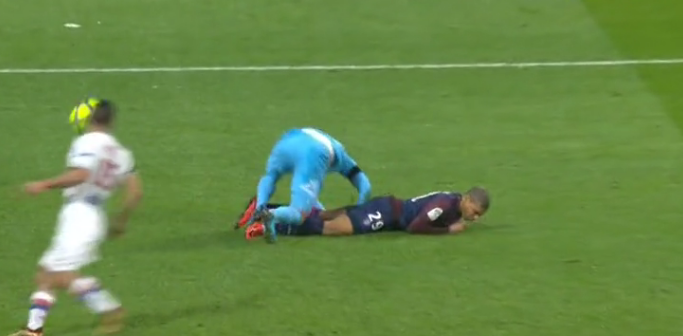 L’attaccante del PSG Kylian Mbappé nella giornata di ieri è stato vittima di un brutto scontro con il portiere del Olympique Lyonnais che in uscita ha colpito proprio l’attaccante che è stato costretto ad uscire dal campo in barella. Di seguito il video dello scontro: