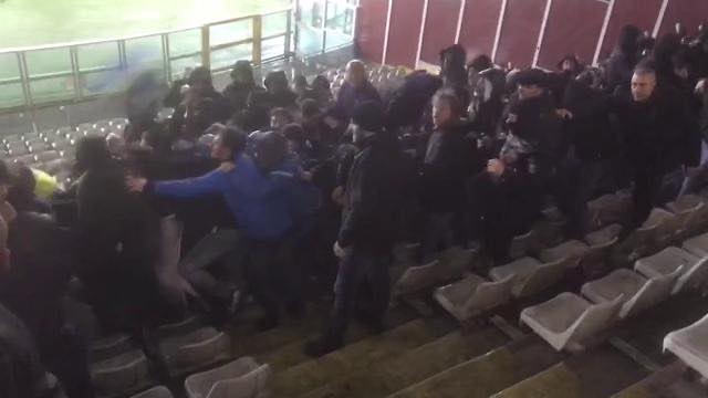 Pochi minuti prima del fischio d’inizio del match tra Torino e Inter, gara valida per la 13^ giornata del campionato di serie A, alcuni tifosi delle due squadre sono venuti a contatto nella curva Primavera. Gli stward non sono riusciti a fermare in tempo le due tifoserie e così la situazione è degenerata. Prima gli insulti e poi si è arrivati agli scontri veri e propri. Un testimone ha raccontato di aver visto gente con il naso rotto. CLICCA QUI per vedere il video.