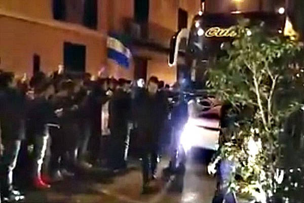 VIDEO: un centinaio di tifosi accolgono il Napoli in hotel a Palermo a suon di “Un giorno all’improvviso…”