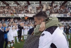 Tenera scena al termine di Palermo-Venezia, semifinale di andata dei playoff di Serie B terminata 0-1. Mentre i giocatori rientravano...