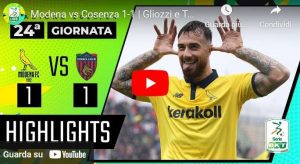 Il match della 24esima giornata di Serie B tra Modena e Cosenza termina 1-1 (Gliozzi, Tutino). Di seguito gli highlights...