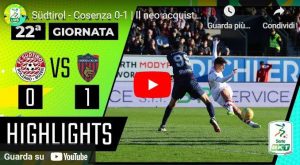 Il match di Serie B tra Sudtirol e Cosenza finisce 0-1. Ecco gli highlights del match: