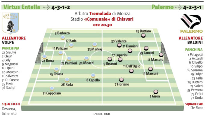 L’edizione odierna de “Il Giornale di Sicilia” ha stilato le probabili formazioni della gara di questa sera tra Palermo e Virtus Entella.